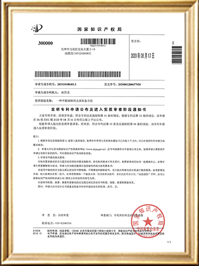 • 實(shí)用新型專利證書(一種甲醛清除劑的原料存儲
